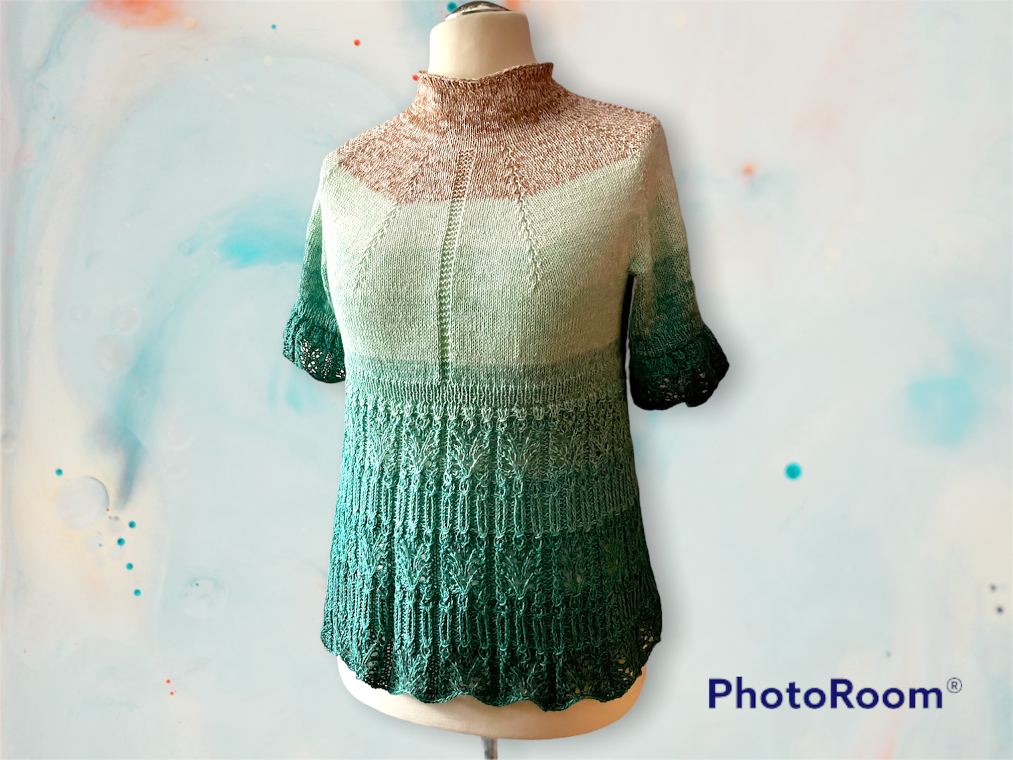 Dieser Pullover wird von unten nach oben in einem Stück und nahtlos in Runden gestrickt. Die halblangen Ärmel mit passendem Farbverlauf werden geschickt in der Rundpasse eingefügt. Das Resultat: Nur zwei dezente Nähte unter den Ärmeln, die nahezu unsichtbar sind. Die Passform des Pullovers ist nach unten hin ausgestellt, was jeder Figur schmeichelt.