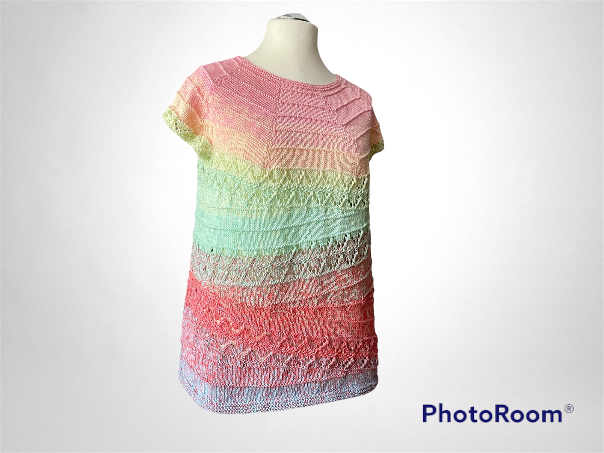 Diese außergewöhnliche Tunika lädt dich ein, kreativ zu sein und neue Stricktechniken auszuprobieren. Entdecke die einzigartige Wirkung der verkürzten Reihen auf den Farbverlauf und freue dich auf ein bemerkenswertes Kleidungsstück, das definitiv Aufmerksamkeit erregen wird.