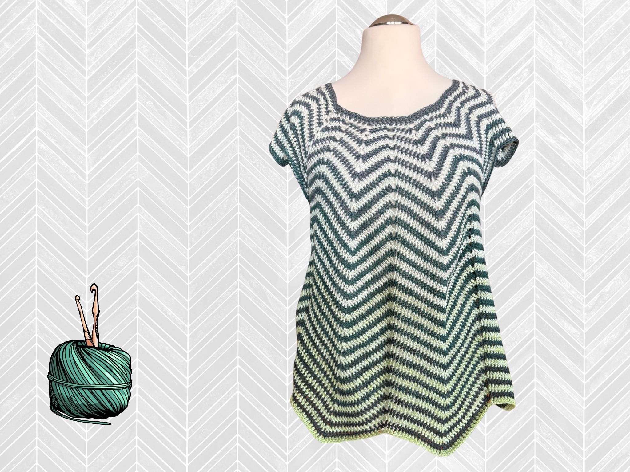 Dieses luftige Oberteil wird mit 2 verschiedenenfarbigen Farbverlaufsgarnen gehäkelt und ist damit genau das Richtige für den Sommer. Und das Beste ist: Die Anleitung ist absolut anfängertauglich. Es werden nur Luftmaschen, feste Maschen und Stäbchen gehäkelt. Die Tunika wird in einem Stück von oben nach unten gearbeitet.