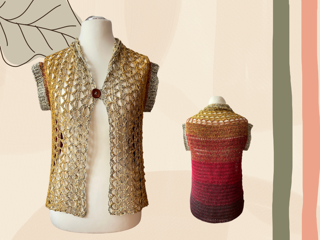 Die dekorative Weste ist ein Projekt, das sich schnell und mit Freude häkeln lässt. Die Weste hat ein einfaches und dennoch raffiniertes Design. Das Rückenteil wird größtenteils mit Stäbchen gehäkelt, während es auf der Vorderseite ein ansprechendes Muster gibt, das einen besonderen Touch verleiht.